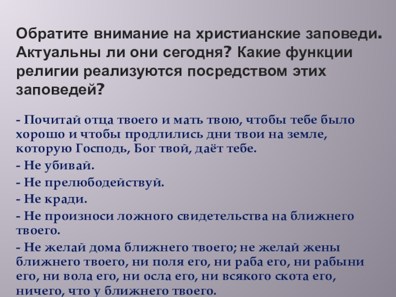 - Не желай дома ближнего твоего; не желай жены ближнего твоего, ни поля его, ни раба его, ни рабыни его, ни вола его, ни осла его, ни всякого скота его, ничего, что у ближнего твоего.