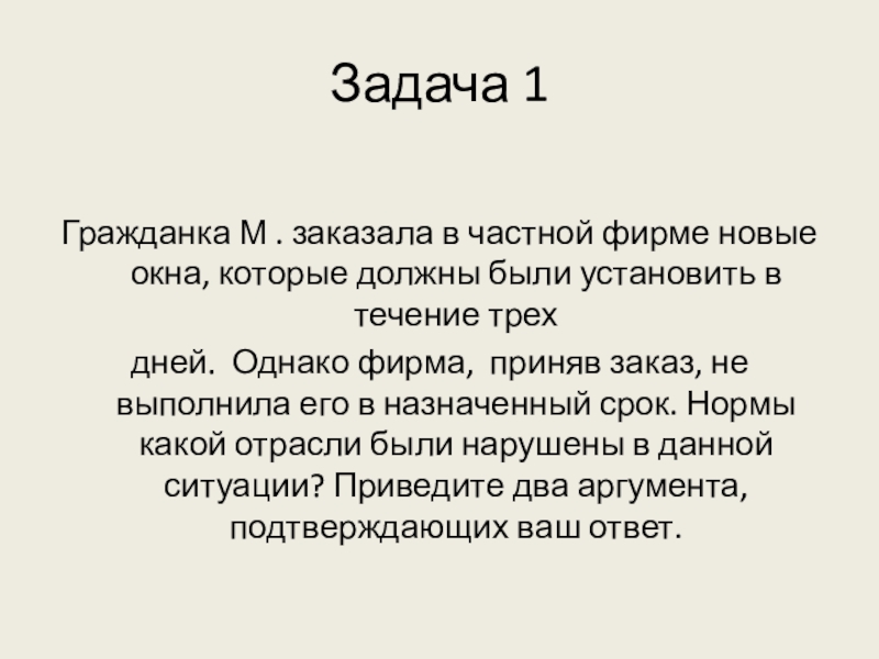 Задача 1Гражданка М . заказала в частной фирме новые окна, которые должны были установить в течение трех