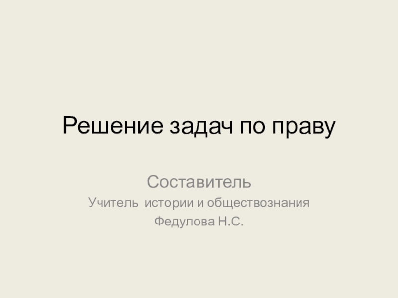 Решение задач по правуСоставитель Учитель истории и обществознанияФедулова Н.С.