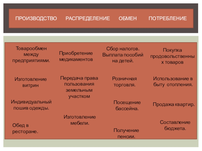 ПРОИЗВОДСТВО РАСПРЕДЕЛЕНИЕ ОБМЕН ПОТРЕБЛЕНИЕ