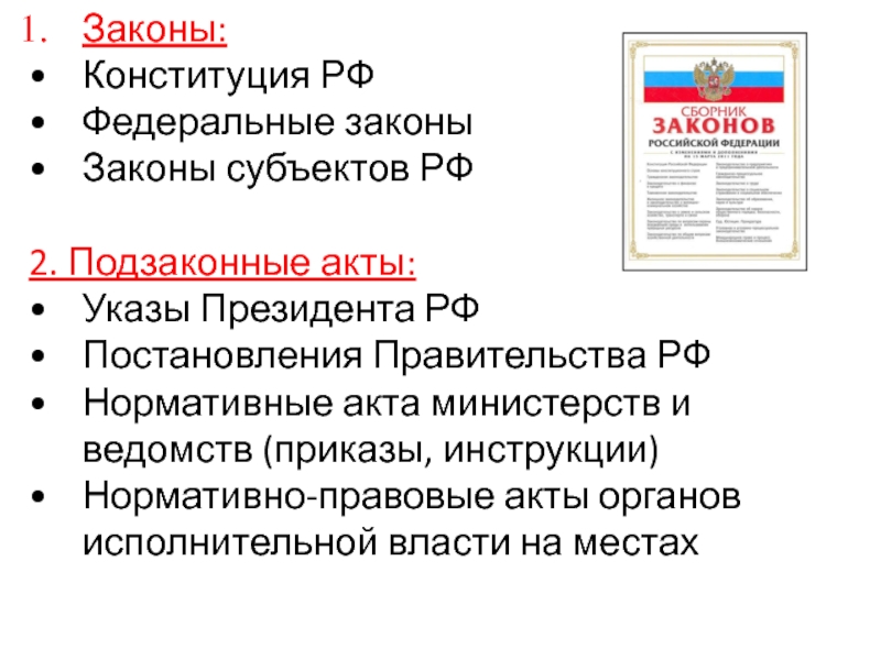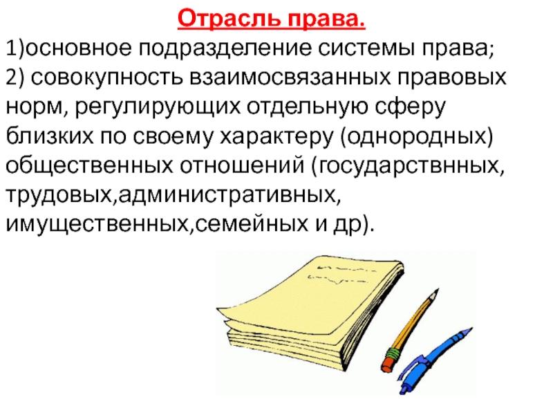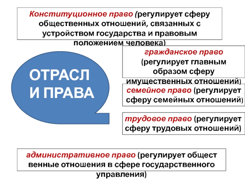 Конституционное право (регулирует сферу общественных отношений, связанных с устройством государства и правовым положением человека)