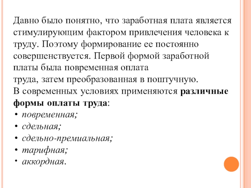 совершенствуется. Первой формой заработной платы была повременная оплата