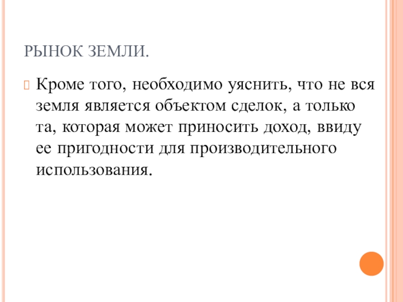 Третьим факторным рынком является рынок земли. Ценность земли связана с