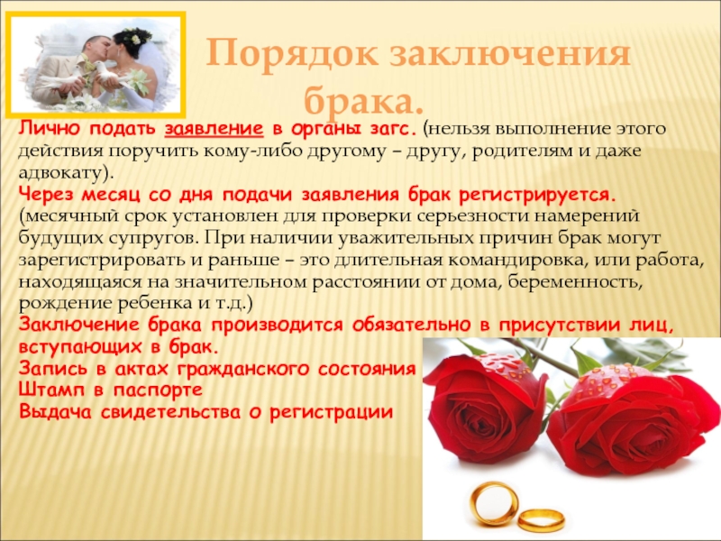 Порядок заключения брака.