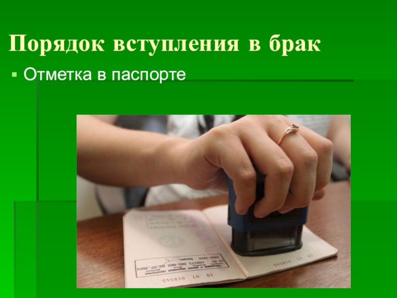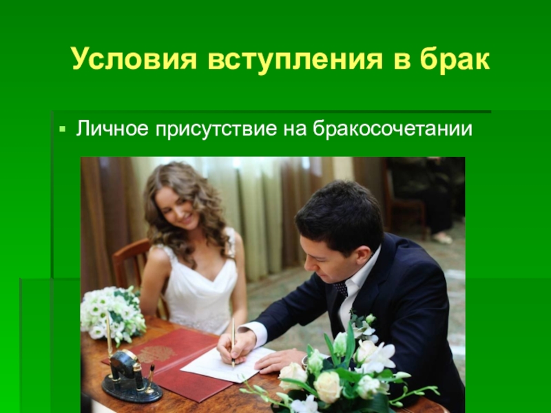 Условия вступления в бракЛичное присутствие на бракосочетании