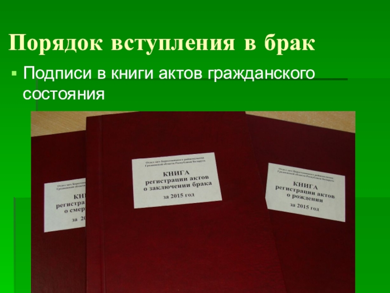 Порядок вступления в бракПодписи в книги актов гражданского состояния