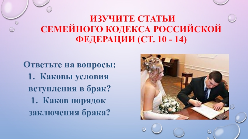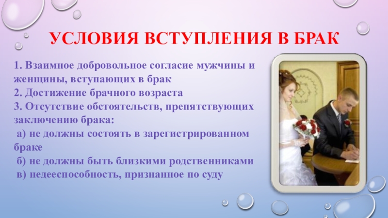 Слайд 8Условия вступления в брак