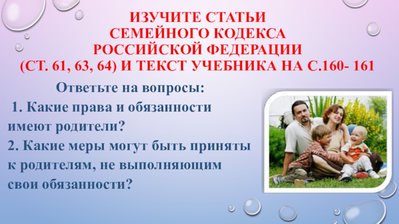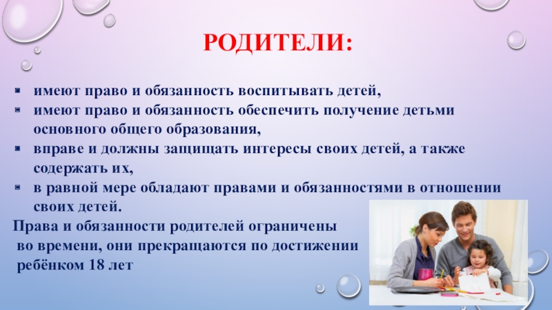 1. Какие права и обязанности имеют родители?