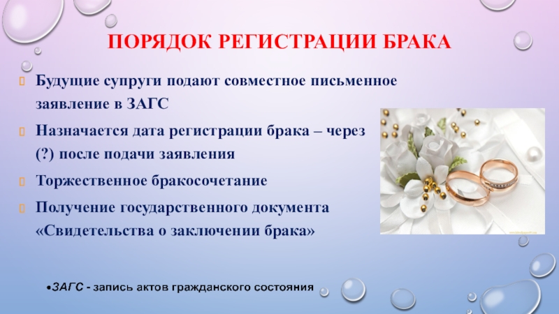 Слайд 9Порядок регистрации брака