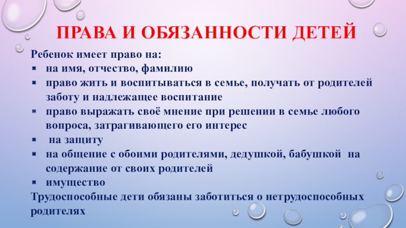 ПРАВА И ОБЯЗАННОСТИ ДЕТЕЙ
