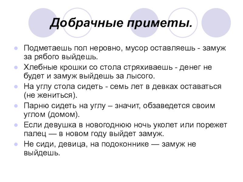 Слайд 26Добрачные приметы.