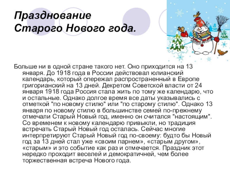 Старого Нового года.