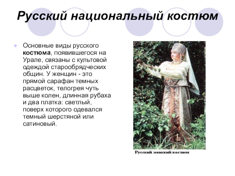 Основные виды русского костюма, появившегося на Урале, связаны