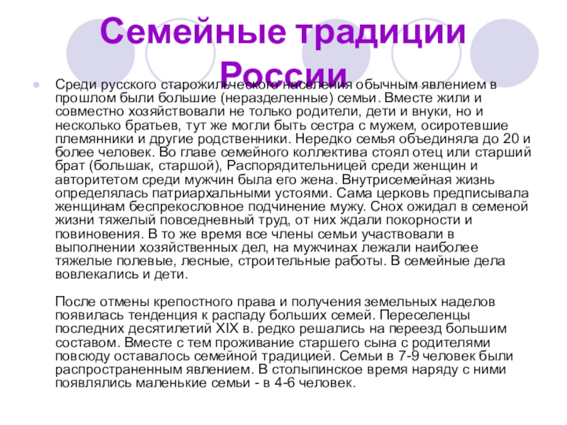 Слайд 8Семейные традиции России