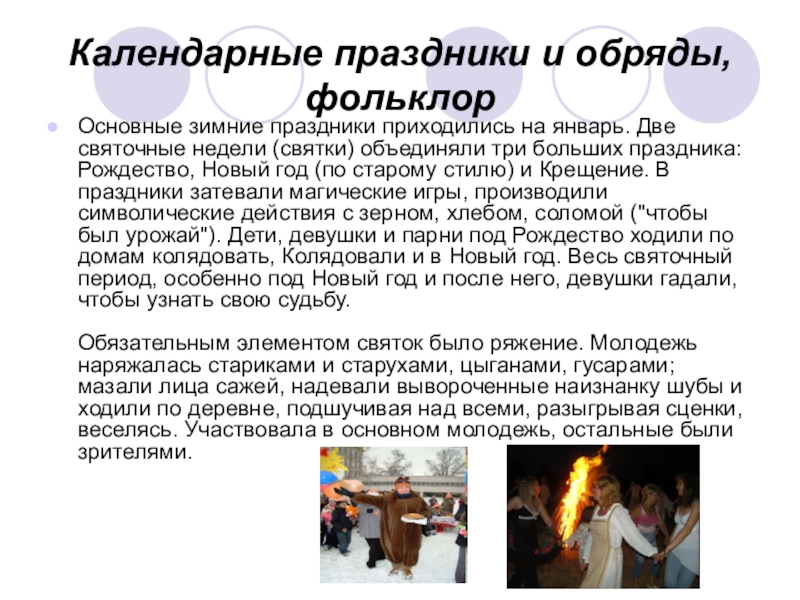 Слайд 12Календарные праздники и обряды, фольклор