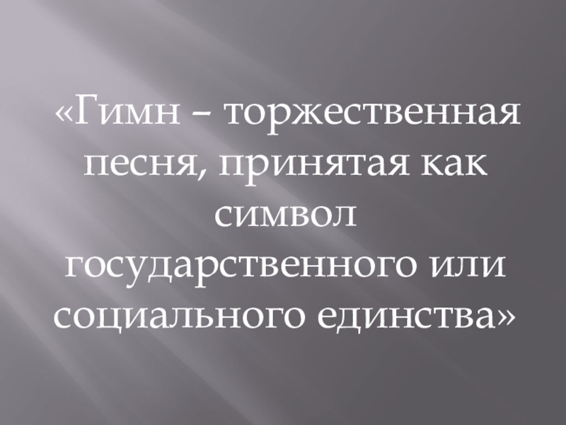 «Гимн – торжественная песня, принятая как символ государственного или социального единства»