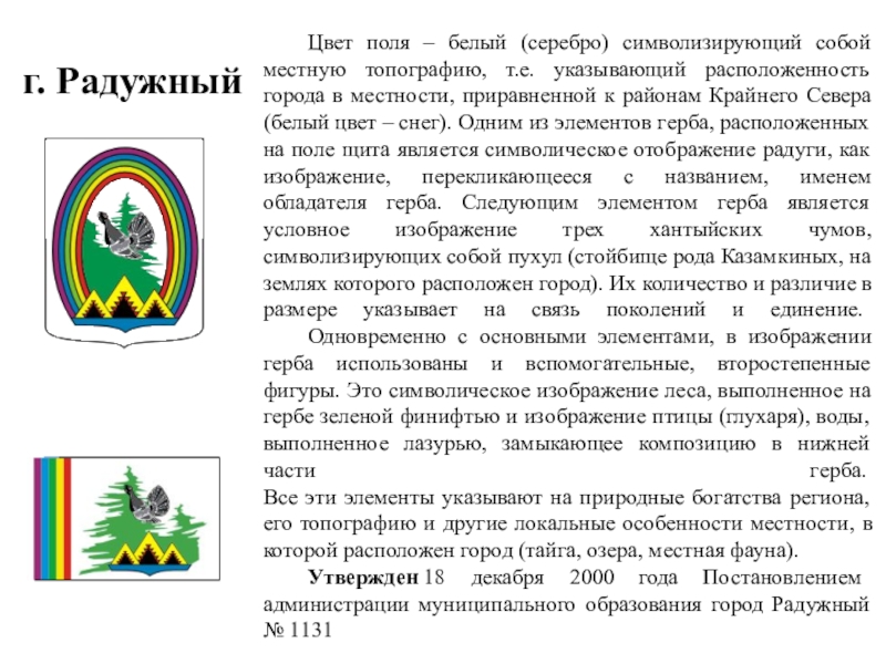 Утвержден 18 декабря 2000 года Постановлением администрации муниципального образования город Радужный № 1131