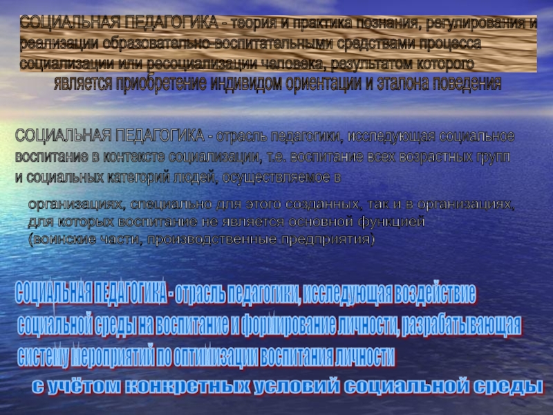 СОЦИАЛЬНАЯ ПЕДАГОГИКА - отрасль педагогики, исследующая воздействие