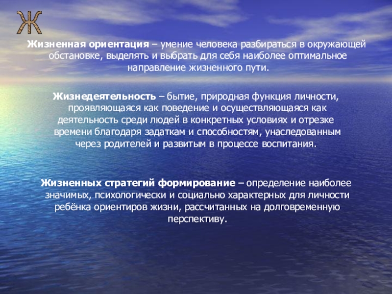 ребёнка ориентиров жизни, рассчитанных на долговременную