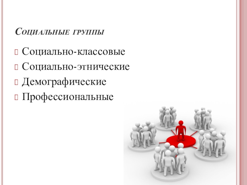Социальные группыСоциально-классовыеСоциально-этническиеДемографическиеПрофессиональные