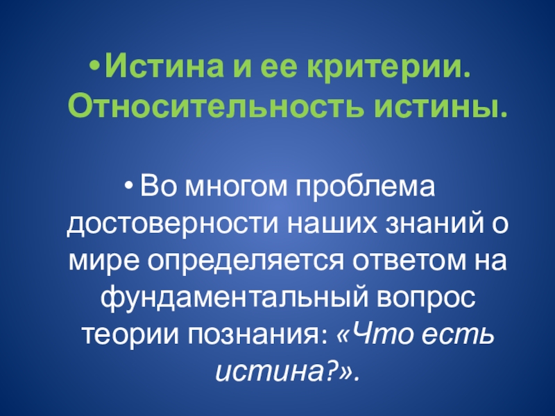 Слайд 9Истина и ее критерии. Относительность истины.