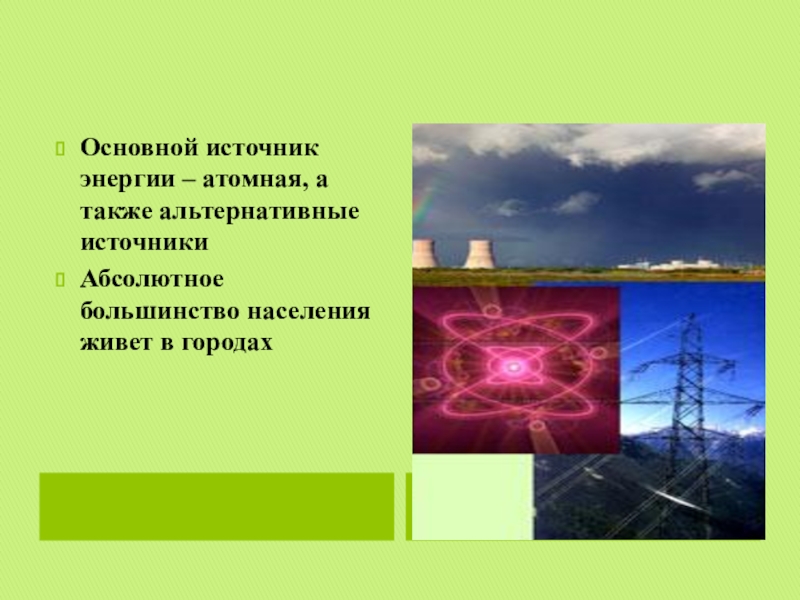 Основные источники энергии- природные энергоносители: нефть, газ, каменный уголь
