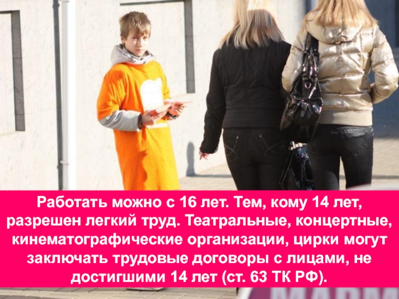 Слайд 5Работать можно с 16 лет. Тем, кому 14 лет, разрешен легкий
