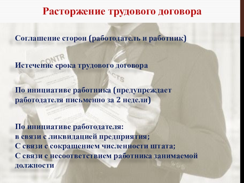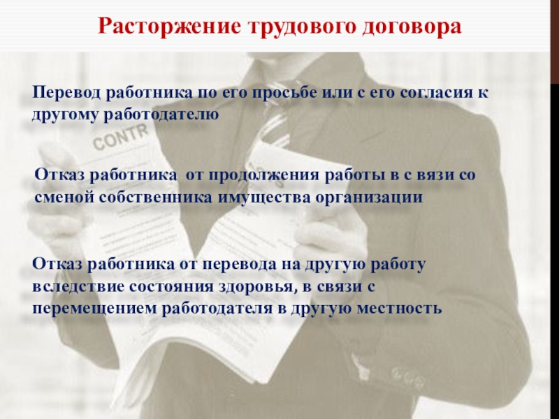 Отказ работника от продолжения работы в с вязи со сменой собственника имущества организации