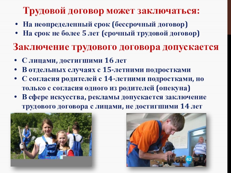В сфере искусства, рекламы допускается заключение трудового договора с лицами, не достигшими 14 лет