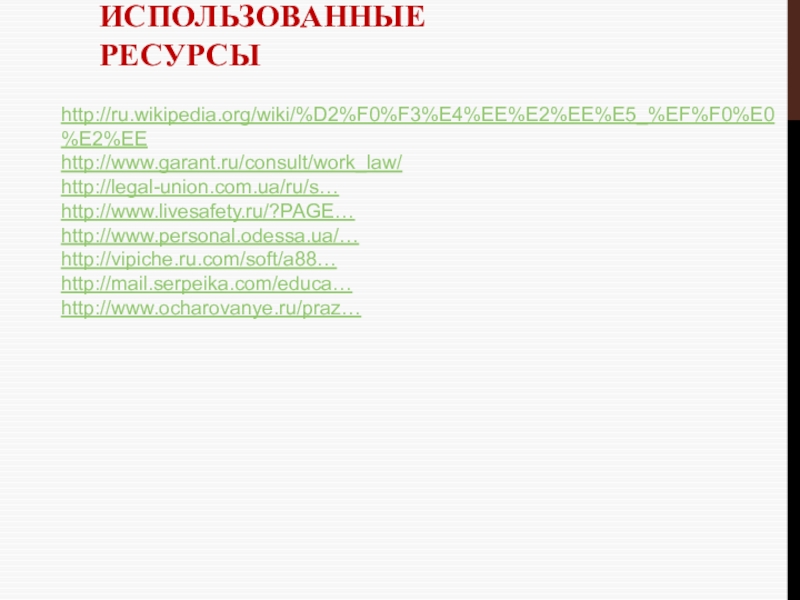 Нормальная продолжительность рабочего времени – 40 часов в неделю (8-часовой рабочий день).