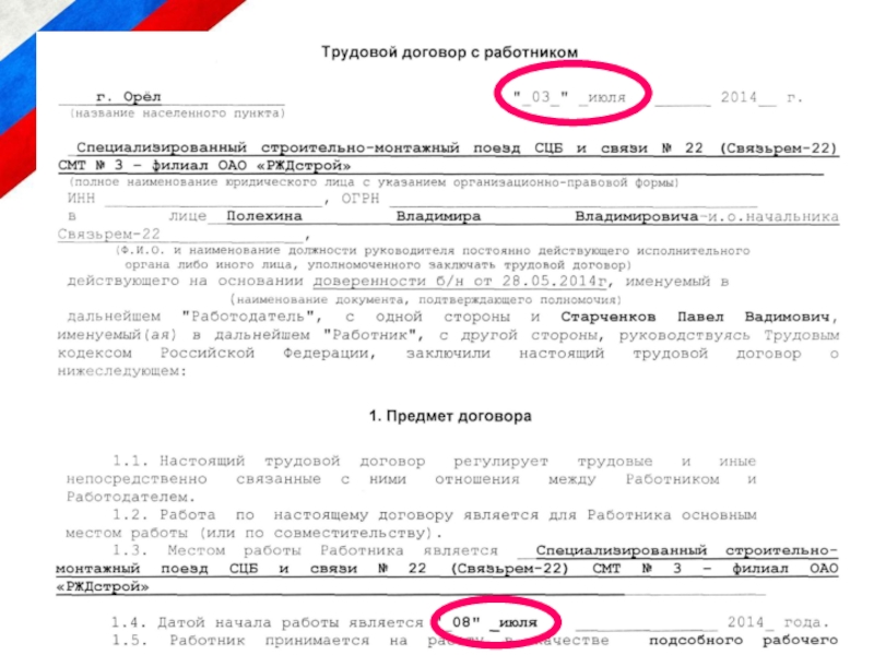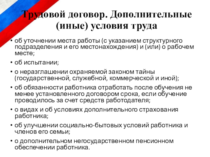 Слайд 5Трудовой договор. Дополнительные (иные) условия труда