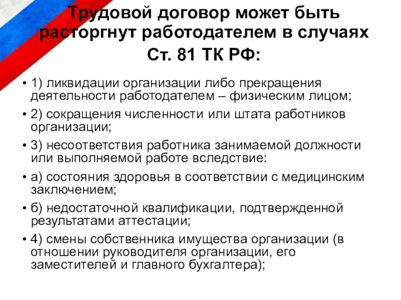 Слайд 16Трудовой договор может быть расторгнут работодателем в случаях