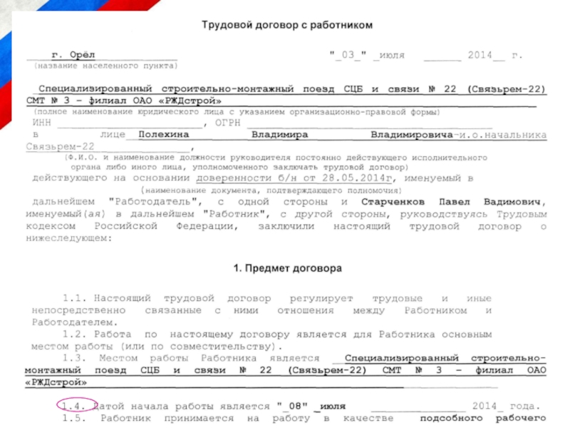 отдела кадров, на время отсутствия работника ушедшего в армию. С Ивановым был подписан бессрочный трудовой договор.