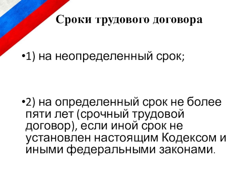 пяти лет (срочный трудовой договор), если иной срок не установлен настоящим Кодексом и иными федеральными законами.