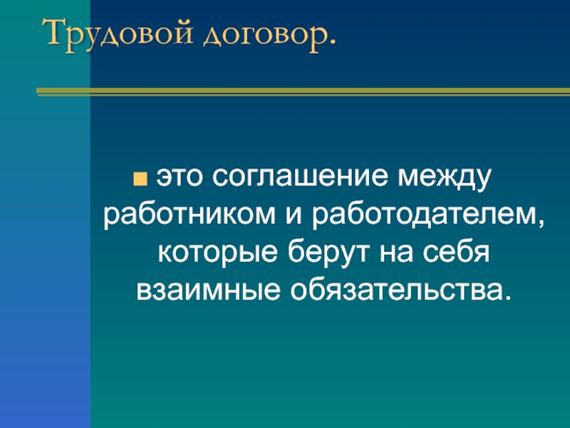 Трудовой договор. это соглашение между работником и работодателем, которые берут на себя взаимные обязательства.