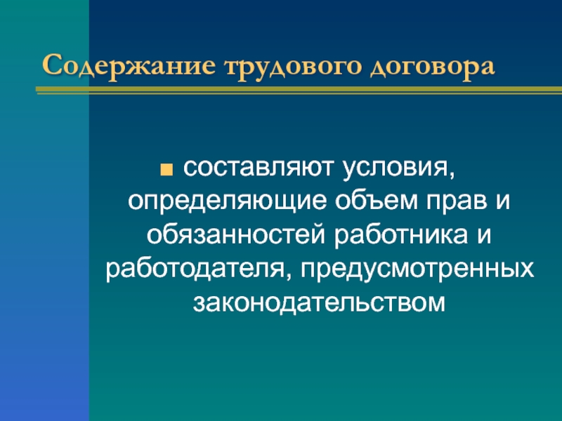 Слайд 4Содержание трудового договора