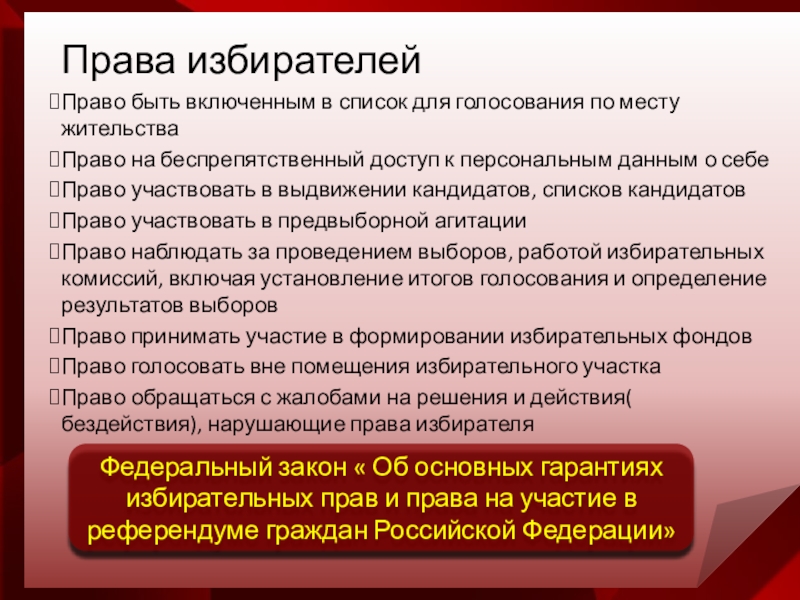 Федеральный закон « Об основных гарантиях избирательных прав и права на участие в референдуме граждан Российской Федерации»