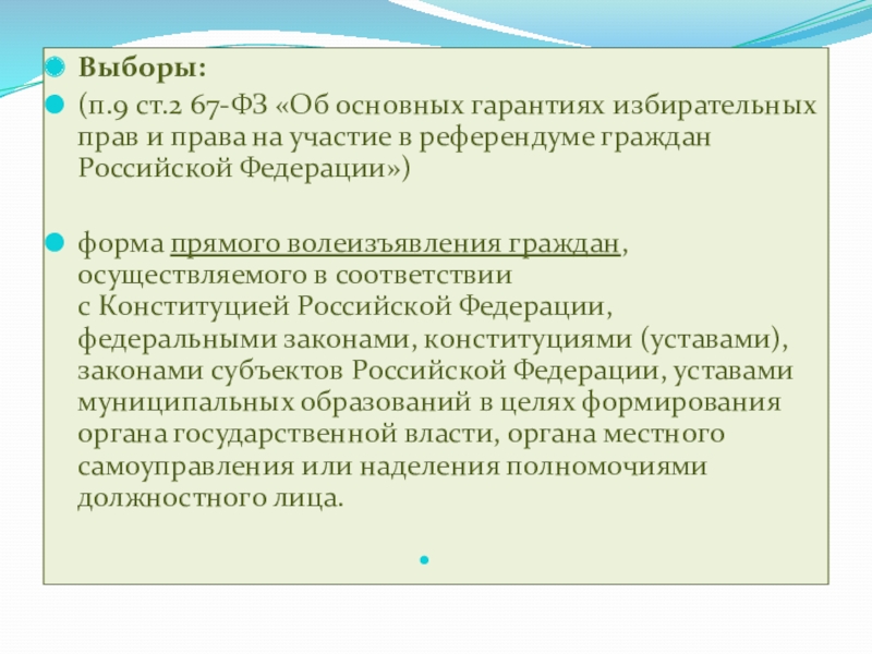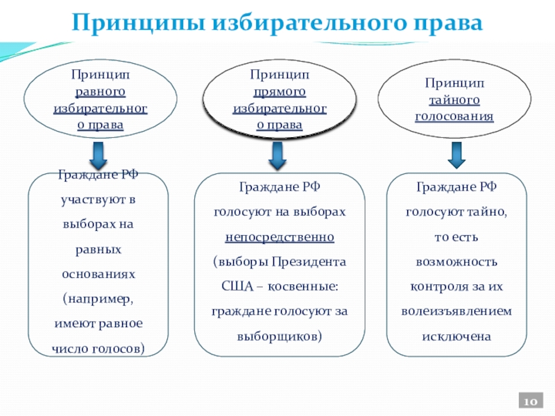 Граждане РФ голосуют на выборах непосредственно (выборы Президента США – косвенные: граждане голосуют за выборщиков)