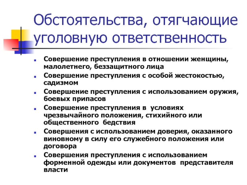 Слайд 14Обстоятельства, отягчающие уголовную ответственность