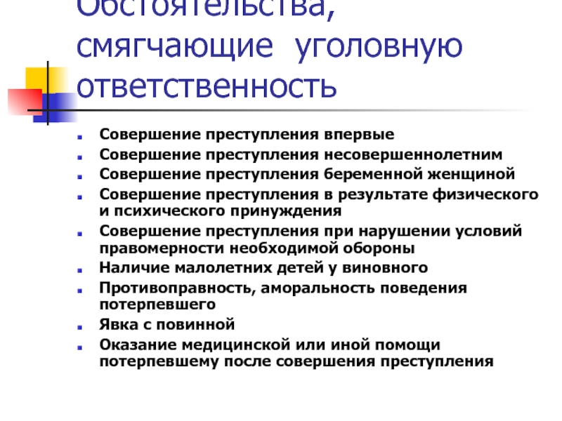 Слайд 12Обстоятельства, смягчающие уголовную ответственность