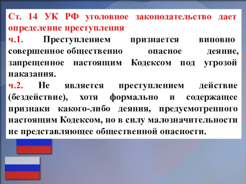 Субъект преступления — это физическое, вменяемое лицо, достигшее установленного законом возраста (ст. 19-21, 134 и 135). Субъектом преступления может быть гражданин России, иностранного государства либо лицо без гражданства.