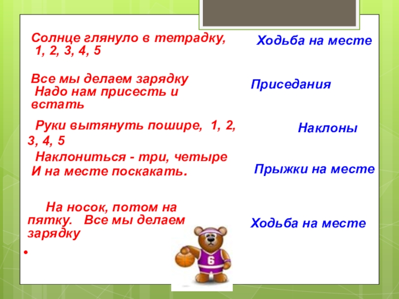 Руки вытянуть пошире, 1, 2, 3, 4, 5