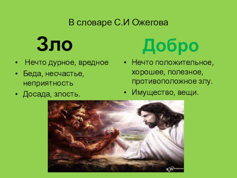 Нечто положительное, хорошее, полезное, противоположное злу.