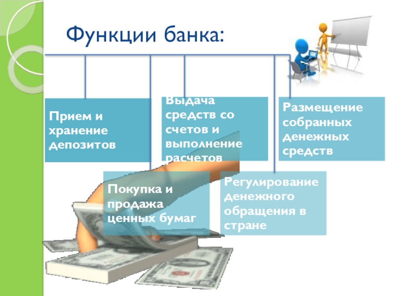 осуществление наличных и безналичных платежей, выпуск и хранение ценных бумаг,