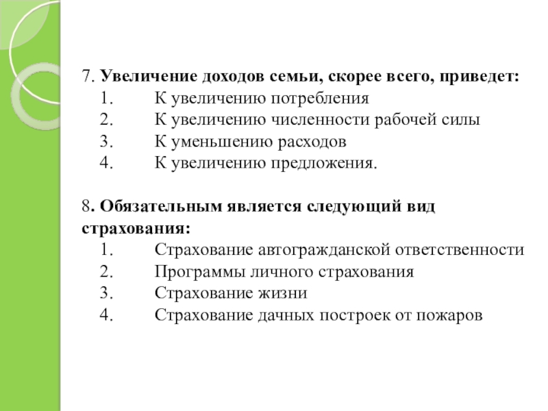 Слайд 47. Увеличение доходов семьи, скорее всего, приведет: