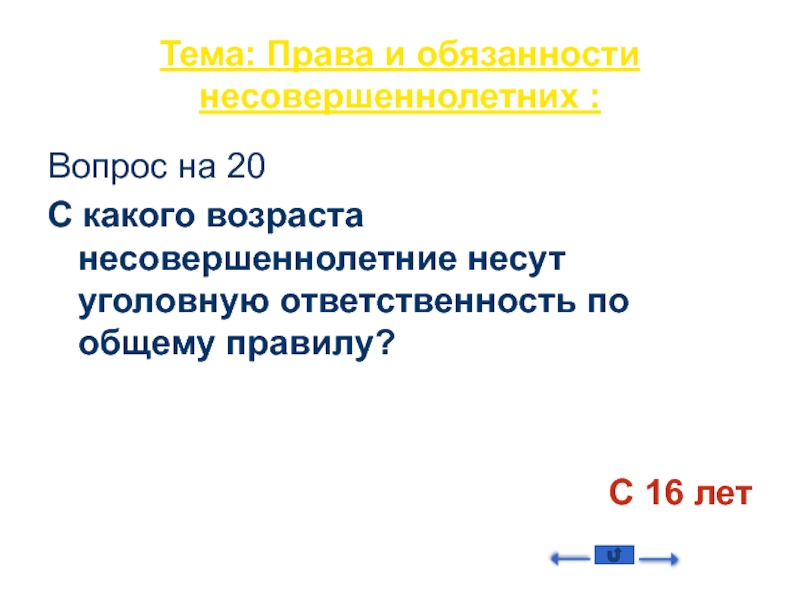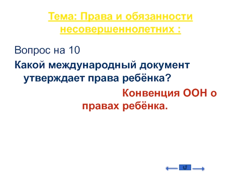Слайд 8Тема: Права и обязанности несовершеннолетних :