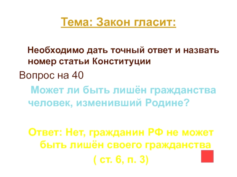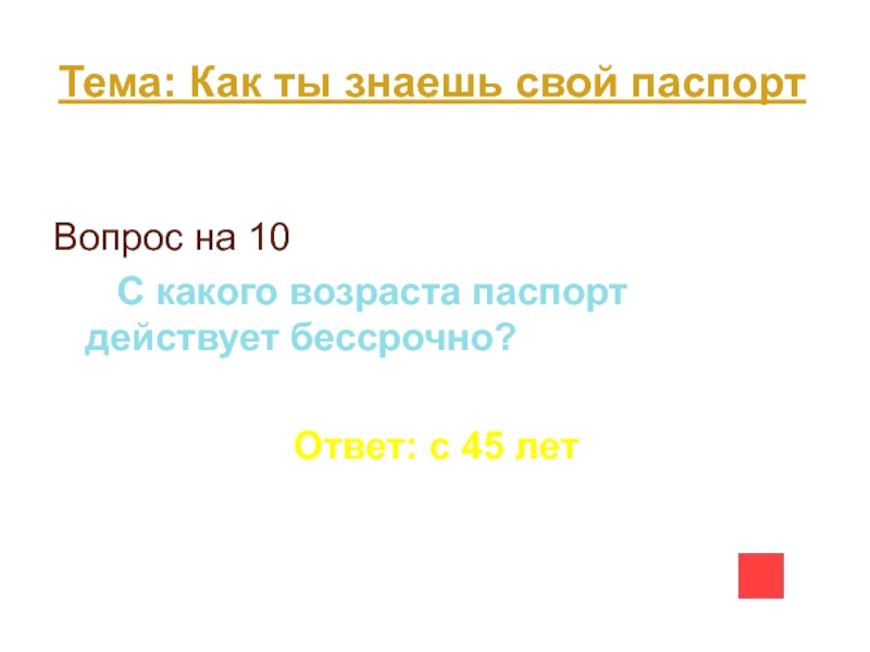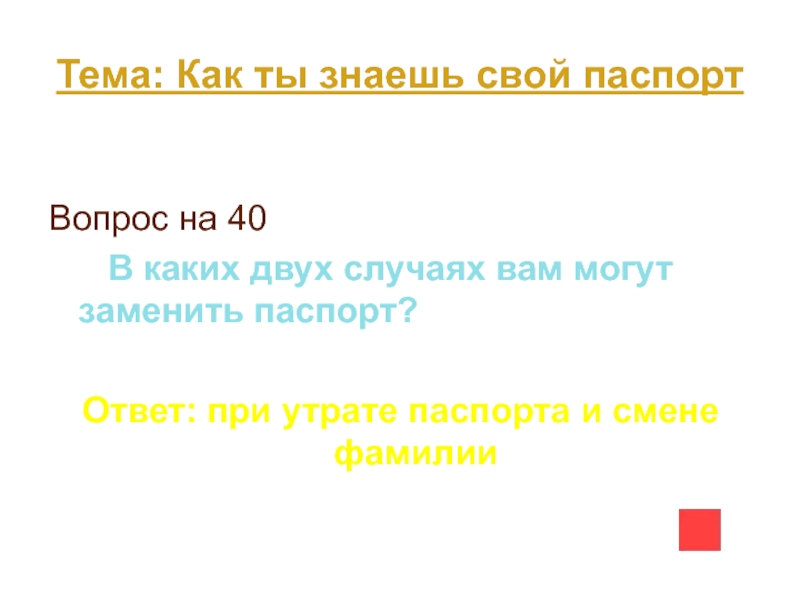 Слайд 36Тема: Как ты знаешь свой паспорт