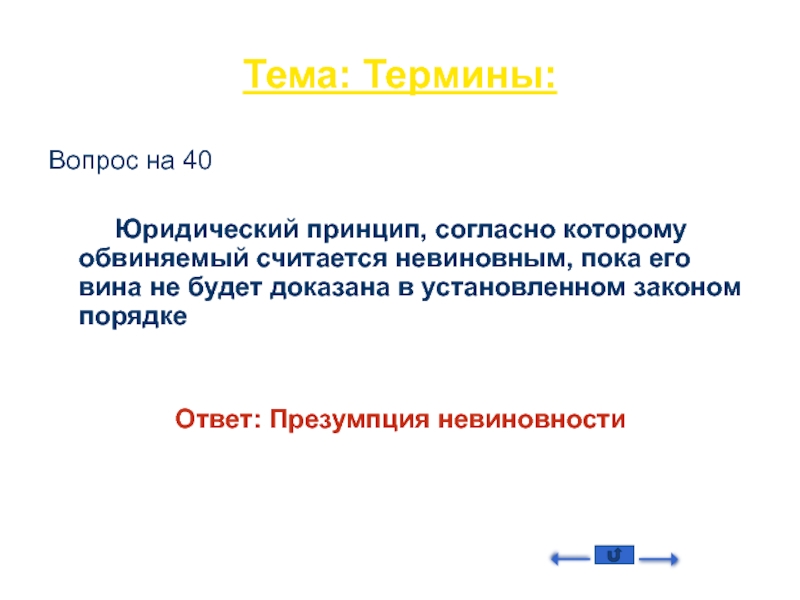 которому обвиняемый считается невиновным, пока его вина не будет доказана в установленном законом порядке
