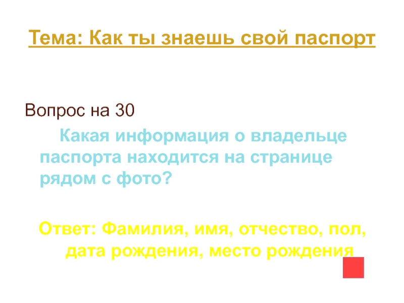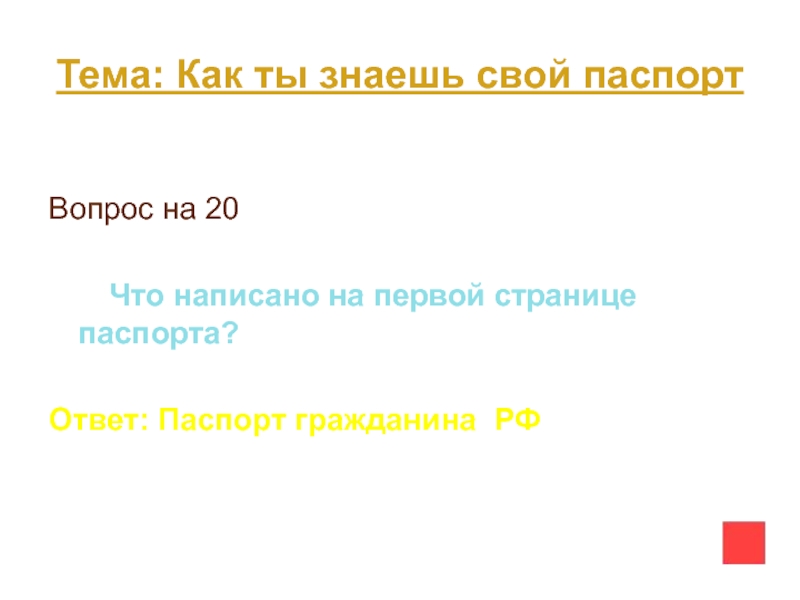 Слайд 34Тема: Как ты знаешь свой паспорт