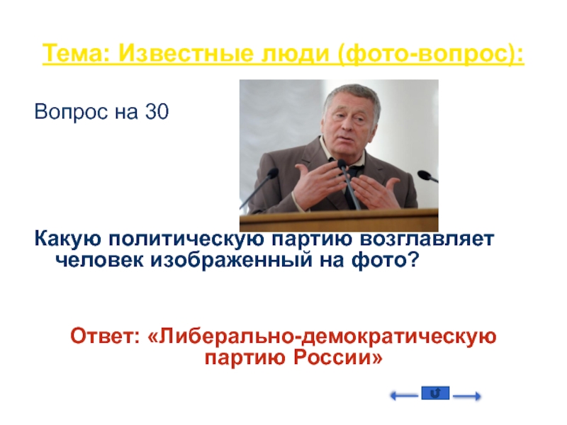 Слайд 13Тема: Известные люди (фото-вопрос):